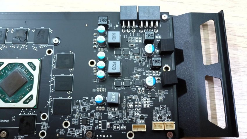 Печатная плата напоминает Sapphire Pulse Radeon RX 580 8GD5 с усиленным питанием. Используются высококачественные электронные компоненты, в частности, специальные дроссели в ребристом корпусе и черные полимерные конденсаторы.