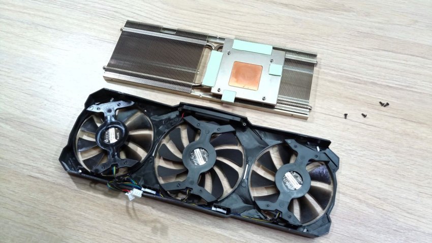 Кожух с вентиляторами снимается независимо от радиатора, что упрощает разбор всей конструкции. И это весьма удобно для пользователя, который решит почистить видеокарту от пыли после длительного срока эксплуатации.