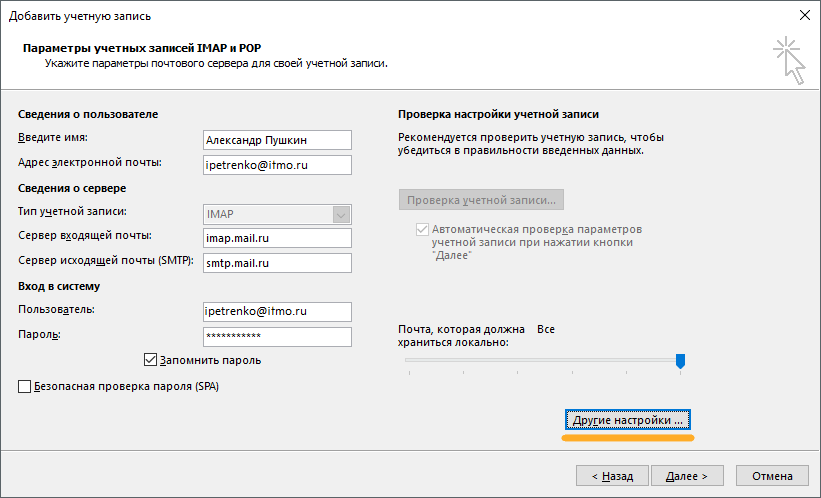 Настройки почты itmo.