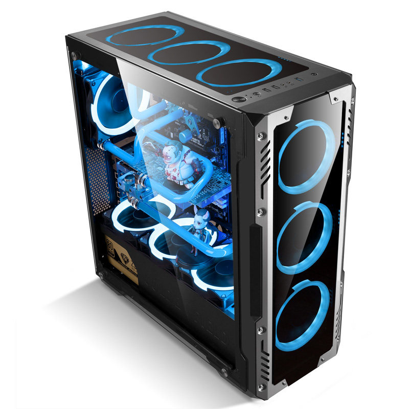 Эта башня впечатляет двумя сторонами из закаленного стекла, на которых видны все высококачественные компоненты, которыми вы комплектуете свой ПК. Шасси двустороннее, поэтому вы можете наблюдать за демонстрационным залом из закаленного стекла как с левой, так и с правой стороны. Помимо эффектного закаленного стекла, алюминиевые панели с мелкой сеткой обеспечивают оптимальный поток воздуха и фильтрацию пыли, помогая обеспечить бесперебойную работу качественных деталей, упакованных внутри. Индивидуальная полоса подсветки ARGB завершает потрясающий дизайн.