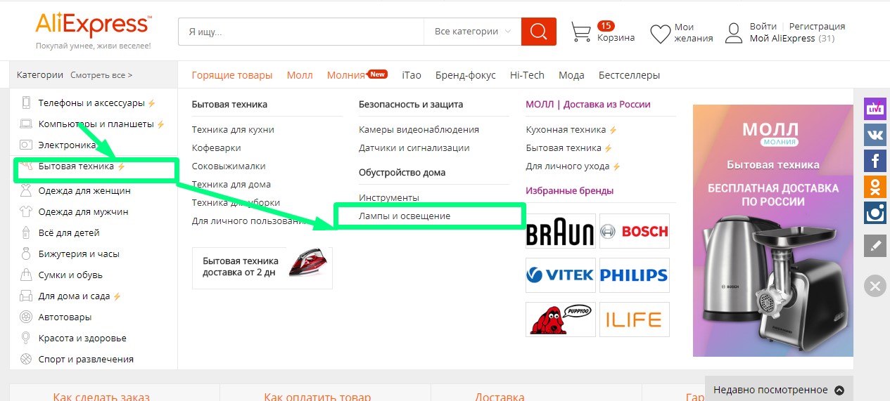 Для того чтобы просмотреть весь каталог кухонных товаров на Алиэкспресс, можно воспользоваться двумя методами: