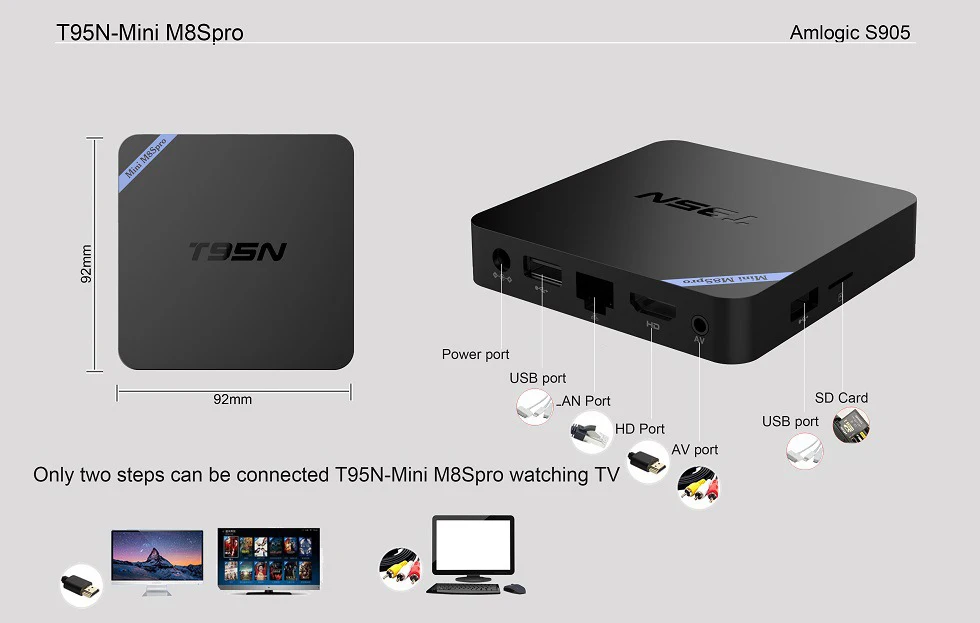 Просто подключите устройство к порту HDMI, подключите его к сети Ethernet или Wi-Fi, и вы готовы к работе. Вы можете транслировать мультимедиа из Интернета, используя наши установленные или доступные приложения, или вы можете воспроизводить их с диска или SD-карты, подключенной непосредственно к устройству. Неважно, что вы прикрепите, OTT-MXQ воспроизведет практически все.