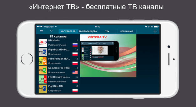 Более 100 телеканалов на разных языках.