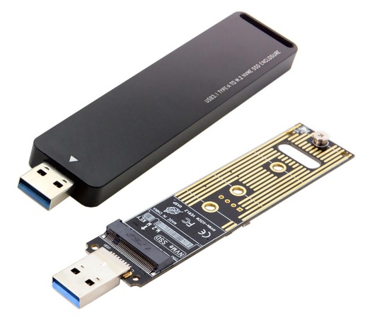 В качестве альтернативы можно использовать SSD-накопители формата M.2 со скоростным NVMe интерфейсом. Есть адаптеры как со встроенным штекером USB 3.0, так и с гнездом USB Type-C.