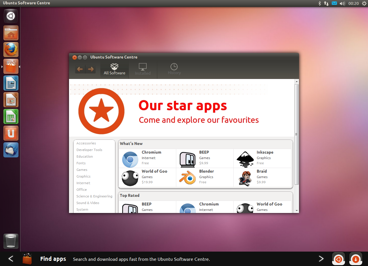 Разработка Ubuntu началась в те времена, когда дистрибутивов Linux, пригодных для простого пользователя можно было пересчитать по пальцам. Разработчики Ubuntu сразу ориентировалась на обычных пользователей, ставя перед собой целью сделать удобную и регулярно обновляющуюся операционную систему. На сегодняший день Ubuntu является самым популярным дистрибутивом Linux для персональных компьютеров — количество его пользователей превышает 20 миллионов. Этот дистрибутив многими рекомендуется как самый дружелюбный и простой в освоении Linux дистрибутив.