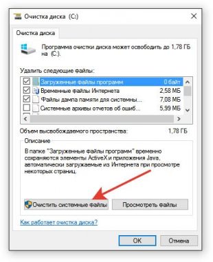 - После непродолжительного анализа системы откроется диалоговое окно очистки диска. Нажмите кнопку «Очистить системные файлы». Снова придется подождать.
