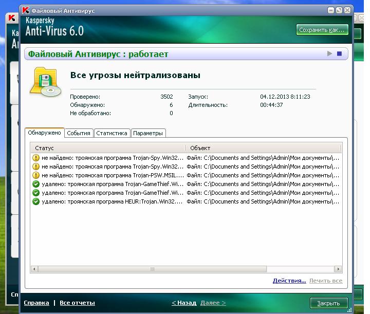 Действия при сканировании на наличие вирусов и вредоносных программ