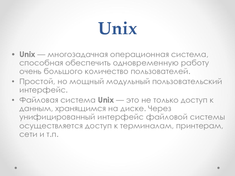 В наше время UNIX используют в основном на серверах, и как систему для оборудования.