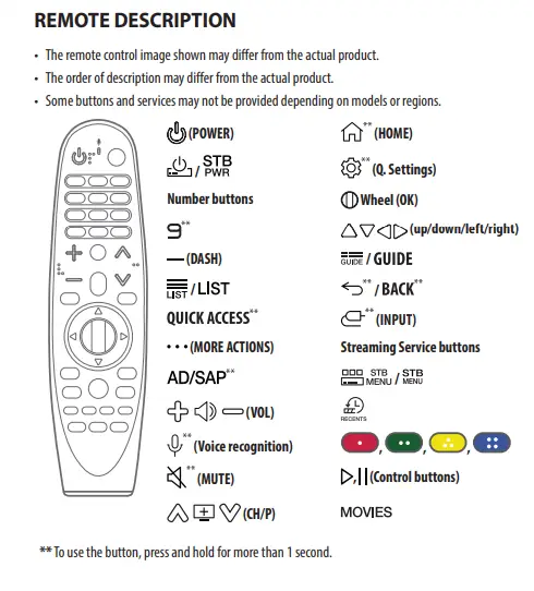 Функции каждой кнопки пульта прописаны в Руководстве пользователя к вашему телевизору LG.