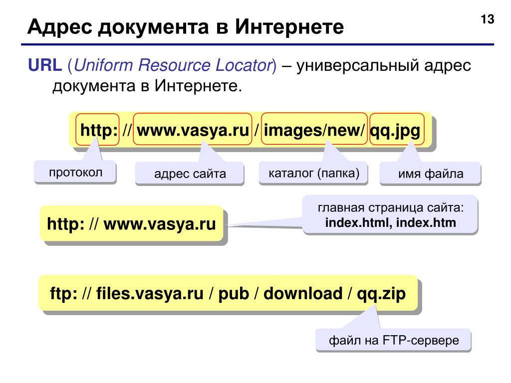 URL-адрес есть не только у сайтов, но и у различных файлов (документов, изображений, видео и так далее), загруженных в Интернет.