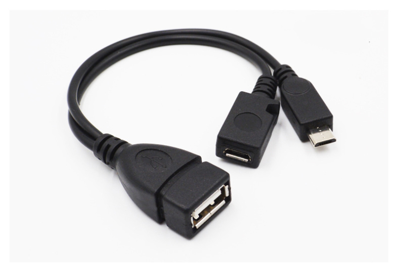 OTG кабель с возможностью подключения дополнительного питания через USB разьем.