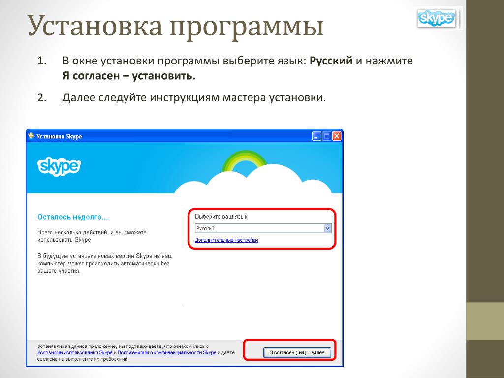 - Процесс установки программы на компьютер