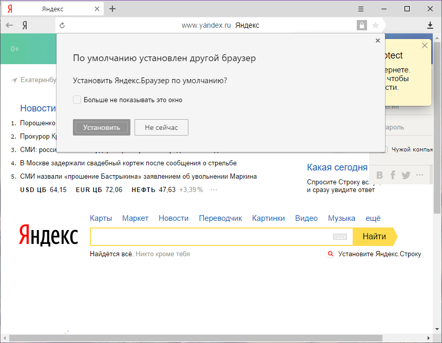 При старте браузер часто показывает уведомление, чтобы пользователь назначил его основным на компьютере
