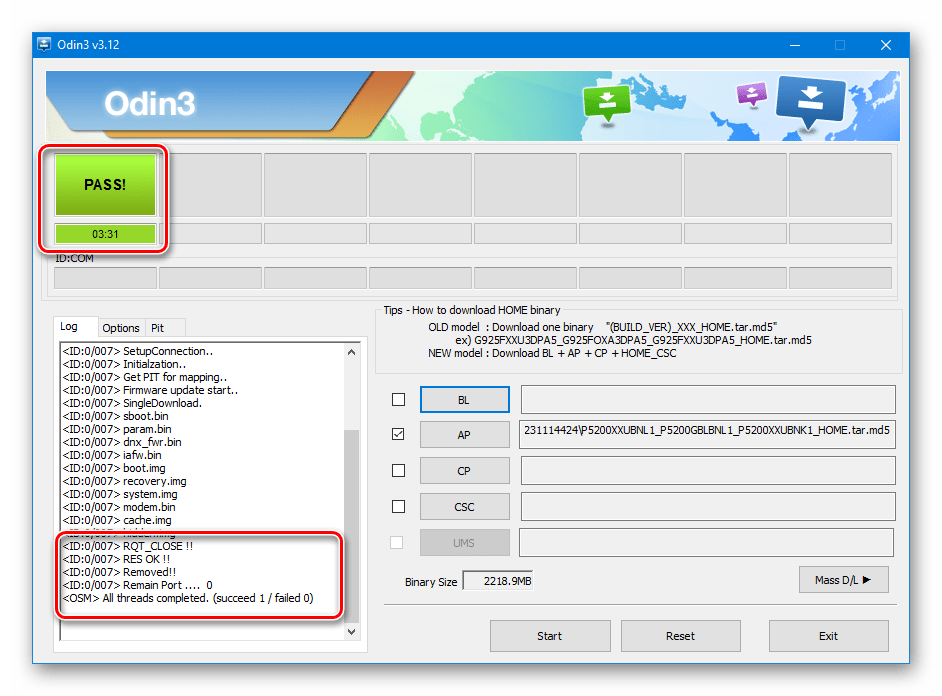 Запускаем Odin и кликаем на пункт «AP» (иногда он называется «PDA»). В этом поле указываем путь к файлу с рекавери. Желательно, чтобы отсутствовали русские символы, только латиница и, в крайнем случае, цифры. Внизу нажимаем на левую большую кнопку «Start» и просто ждем окончания процедуры.