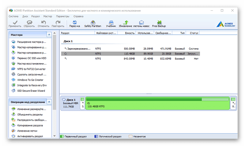 Как изменить размер раздела с помощью AOMEI Partition Assistant?
