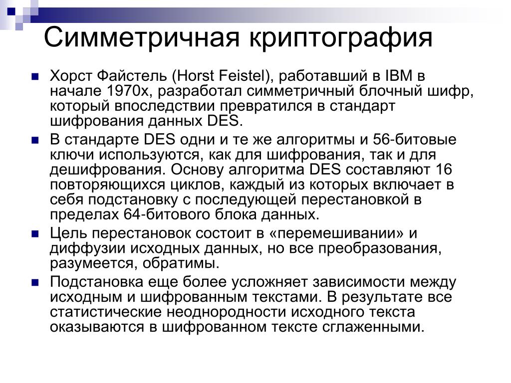 - Тройной DES. Triple DES — преемник оригинального алгоритма Data Encryption Standard (DES), созданный в ответ на попытки хакеров взломать DES. Это симметричное шифрование, которое когда-то было наиболее широко используемым симметричным алгоритмом в отрасли, хотя постепенно от него отказываются.