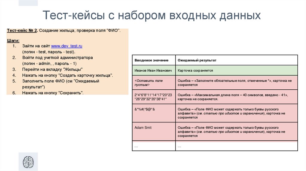 Разработка тестового примера