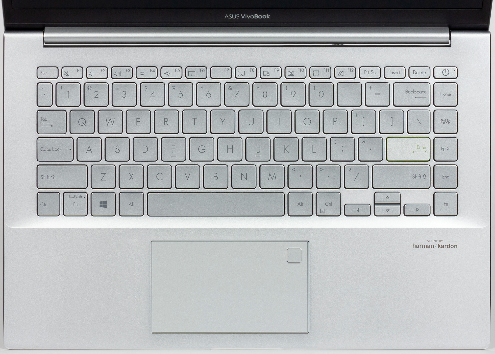 Еще одна вещь, которая мне понравилась в VivoBook K15 OLED, — это клавиатура. Ноутбук поставляется с полноразмерной клавиатурой с подсветкой и ходом клавиш 1,4 мм для удобного набора текста. Тактильные ощущения от клавиш приятные, и у меня не было проблем с набором нескольких длинных статей на этом ноутбуке. Как и некоторые ноутбуки VivoBook, VivoBook K15 OLED оснащен клавишей Enter с зелеными вставками по углам.