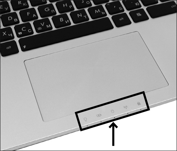 - HP — кнопка с лампочкой на самом тачпаде в левом верхнему углу.