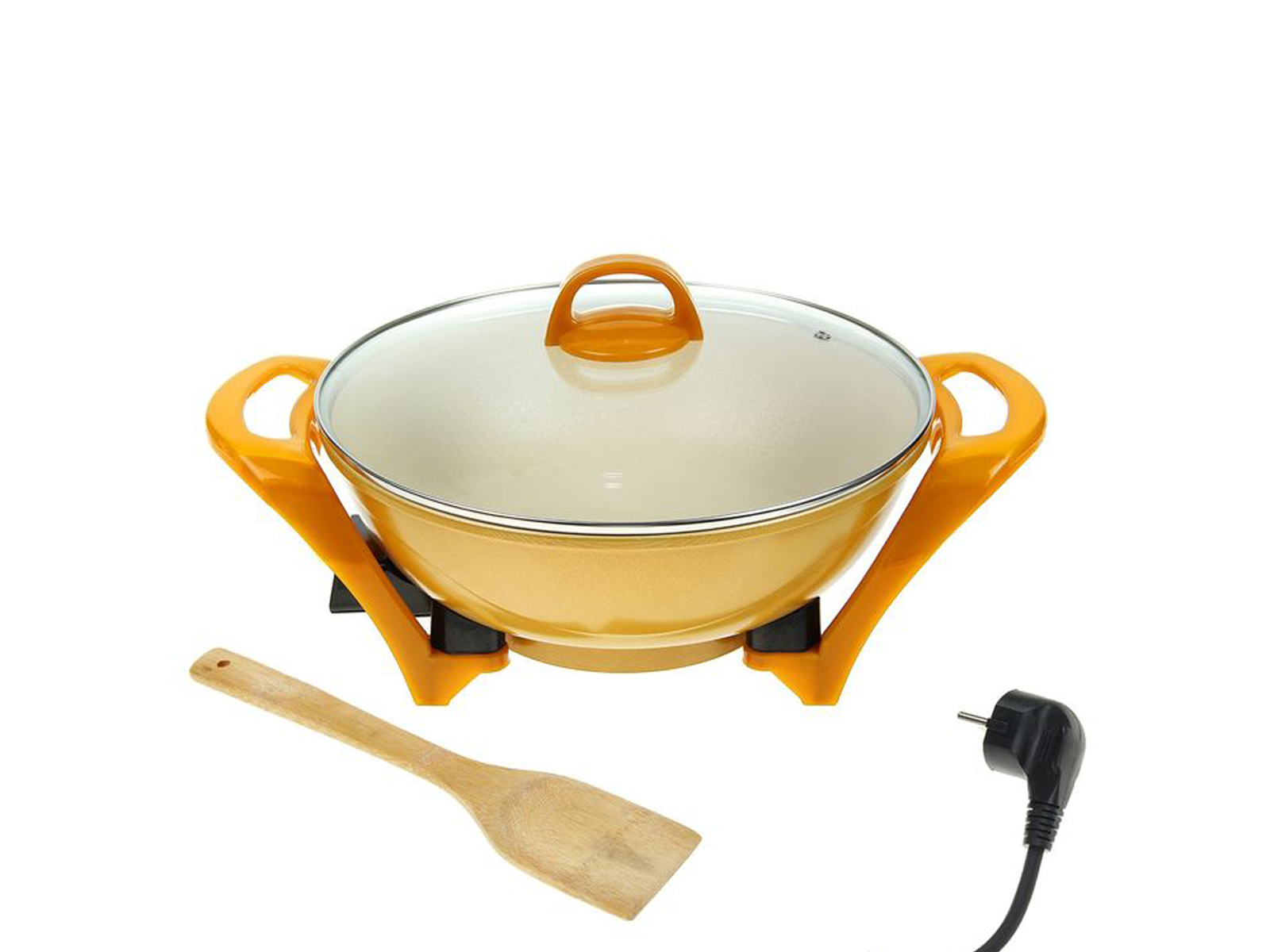 Electric Woks. У этих кастрюль также закругленное дно, но она устанавливается либо на ножках, либо на дне. Поскольку дно закруглено, нагреватель ровный, и его можно регулировать. Электрический вок не нужно приправлять, что является одним из самых больших преимуществ использования электрического вок по сравнению с традиционным.