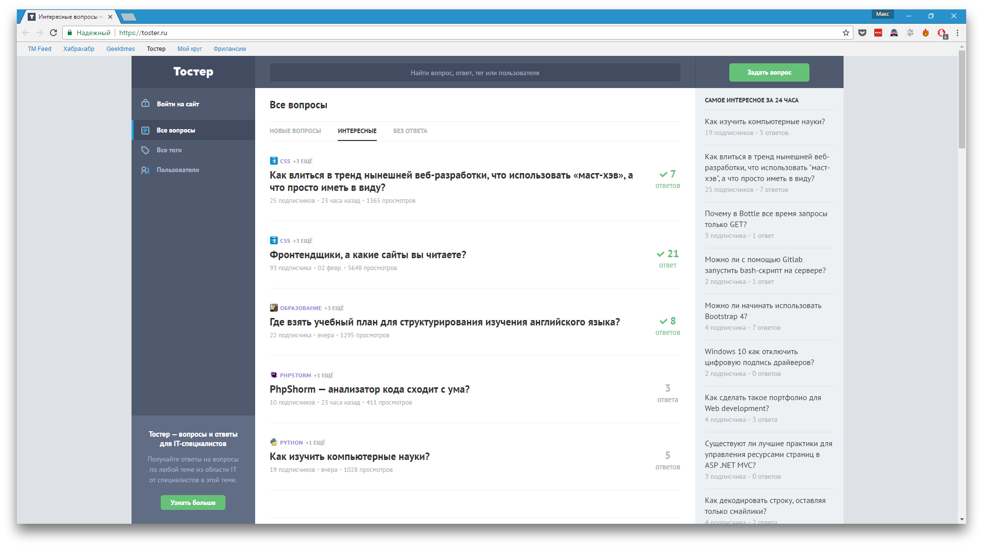 Узкоспециализированная площадка, предназначенная для ответов и вопросов на тему IT. Если вам нужно узнать что-то о разработке ПО, веб-дизайне, работе программ, сервисов или комплектующих ПК, обращайтесь к пользователям этого ресурса. Именно здесь проще всего найти технических специалистов, готовых поделиться знаниями на русском языке.