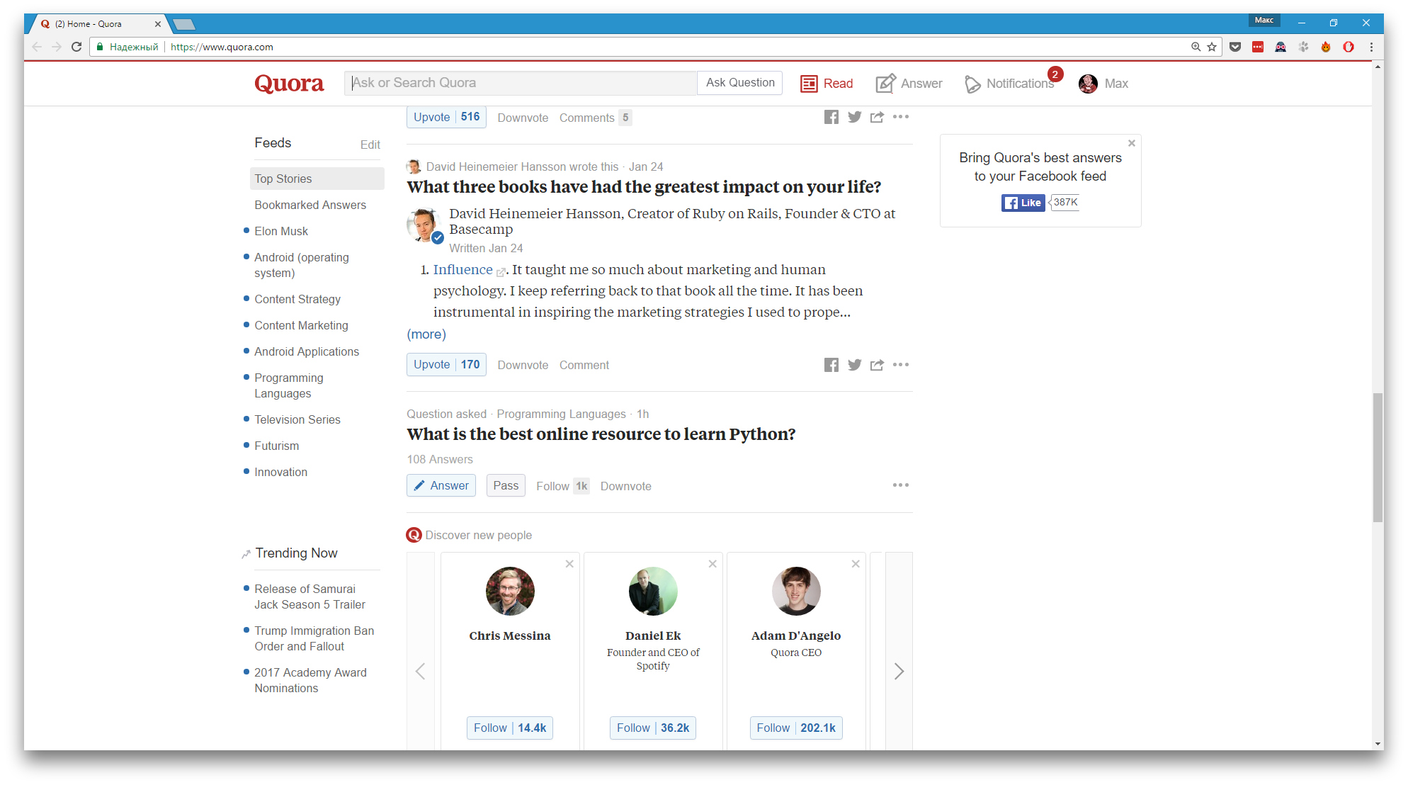 Одна из самых посещаемых международных площадок для обмена знаниями. Сейчас Quora поддерживает английский и испанский языки. Здесь вы найдёте огромное количество рубрик для вопросов и гигантскую аудиторию пользователей, готовых помочь. Среди последних — немало публичных фигур, которые тоже участвуют в дискуссиях.