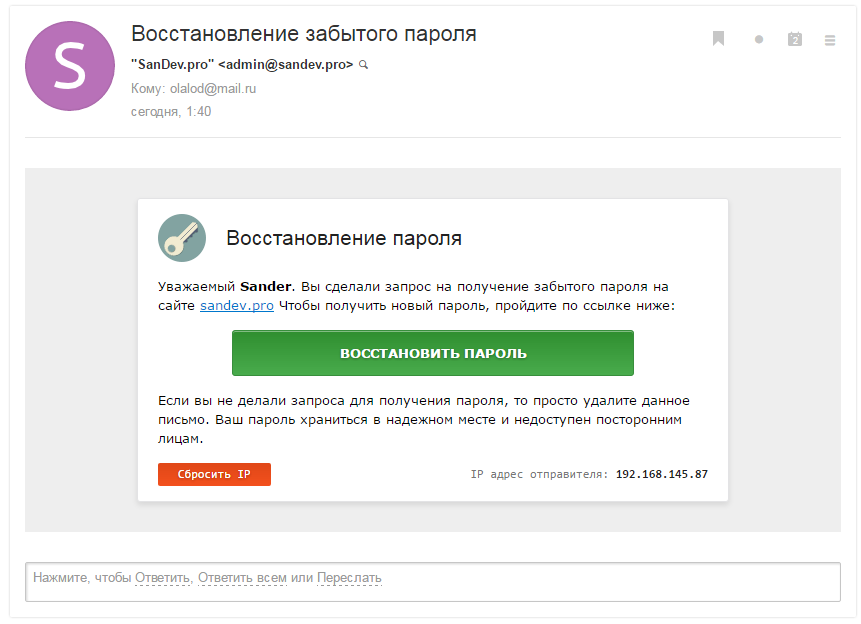 Вы запросили восстановление пароля, а письмо не пришло? Попробуйте проверить папку Спам вашего почтового сервиса.