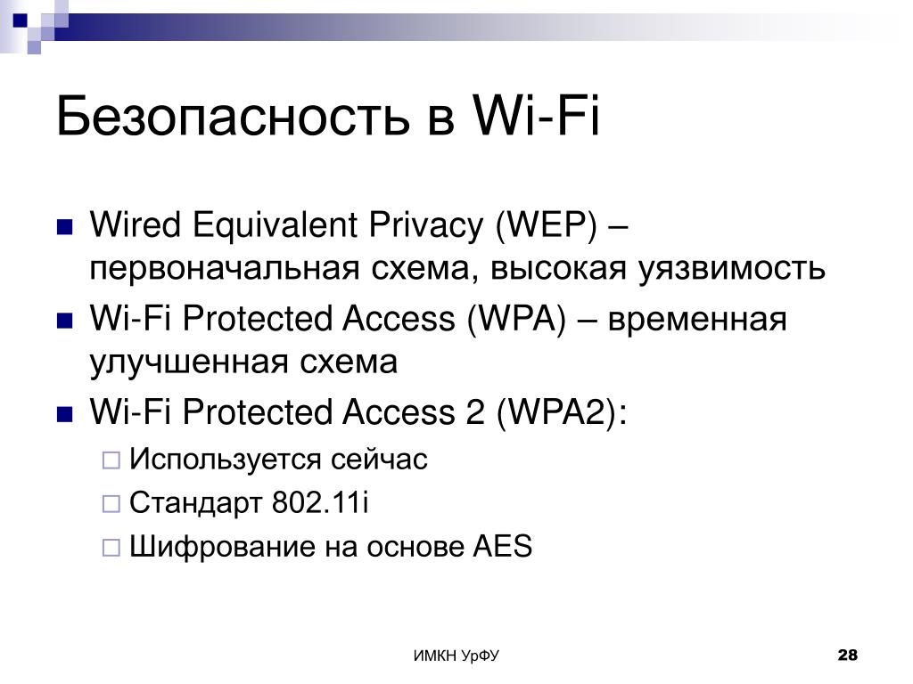 Однако для использования WPA все устройства в сети должны быть настроены для WPA. Если какое-либо из устройств в цепочке связи настроено для WEP, устройства WPA обычно используют меньшее шифрование, чтобы все устройства могли обмениваться данными.