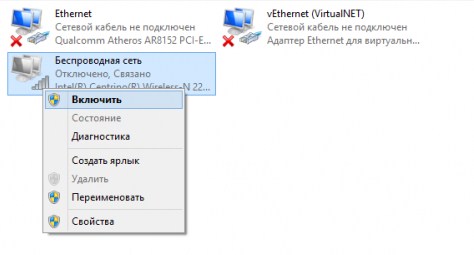 - Сам адаптер будет подсвечен серым и его надо просто включить, нажав на него правой кнопкой.