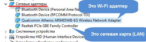 На скриншоте видно, что Wireless (беспроводная) сетевая карта – Broadcom, а под кабель (Ethernet) стоит Realtek.