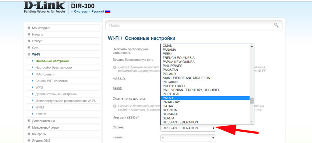 - Проверьте настройки региона в роутере. Укажите правильный регион. Попробуйте выбрать Россию, затем США, затем Чили. Это может влиять на чувствительность приёмника и мощность передатчика. Имейте в виду, что на многих моделях роутеров может не быть настройки региона.