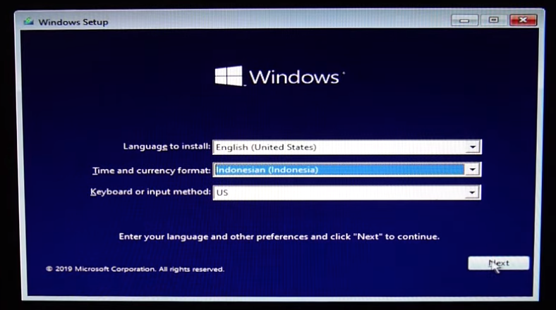 Шаг 3. На странице установки Windows выберите язык и нажмите Далее для продолжения.