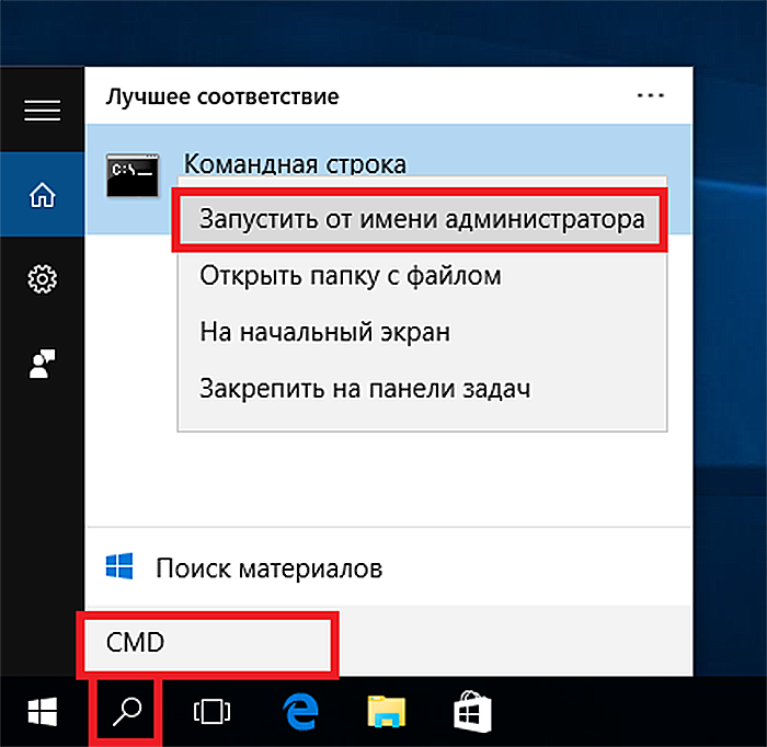- Введите «CMD» в поисковой строке на панели задач, правой кнопкой мыши нажмите на опцию Командная строка и нажмите Запуск от имени администратора.