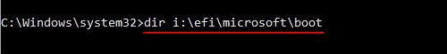 dir I:\efi\microsoft\boot\ (где I:, буква присвоенная скрытому разделу),