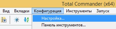 Посмотреть файлы загрузчика Windows 10 можно не только в командной строке, но и с помощью файлового менеджера Total Commander. Запустите его и откройте Конфигурацию—>Настройка,