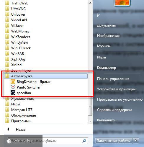 В Windows 7 присутствует отдельная папка «». Она находится в меню «Пуск ». Для этого нужно только нажать «Все программы ». Здесь показываются продукты, которые запускаются в результате помещения соответствующего ярлыка в нужное место. Если его удалить отсюда – запускаться будет лишь то, что указано в системных настройках.