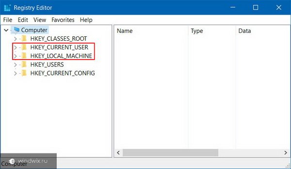 - В левой части окна откройте папку текущего пользователя CURRENT USER;