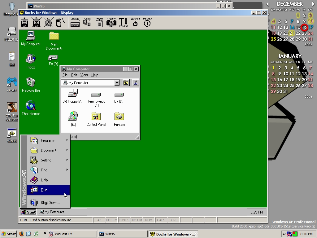- DOSBox на самом деле не оптимизирован для Windows 95, он действительно для игр DOS и, возможно, для Windows 3.x