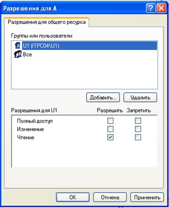 При указании разрешения Полный доступ автоматически устанавливаются флажки все Разрешить для выбранного пользователя или группы.