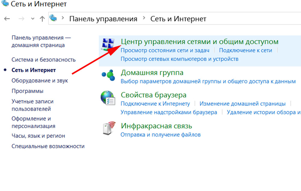 - Откройте «Центр управления сетями и общим доступом». Проще всего это сделать, кликнув меню «Пуск» и набрать в поиске название меню. Также, вы можете кликнуть правой кнопкой мыши по иконке сетевого подключения в правом нижнем углу или найти данное меню в Панели управления.