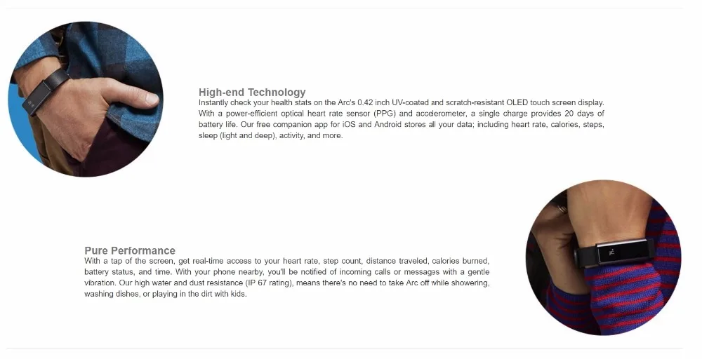 Design — в партнерстве с Amazfit компания Xiaomi выпустила международную версию Amazfit Arc, названную смарт-браслетом Xiaomi Amazfit A1603 . Носимое устройство имеет те же характеристики, что и 0,42-дюймовый OLED-экран с УФ-покрытием, устойчивый к царапинам. У него небольшой экран, но он хорошо выглядит благодаря своему уникальному дизайну и ремешку из термополиуретана. Браслет выглядит спортивно и не слишком навязчиво по сравнению с другими браслетами. Он также имеет водонепроницаемость IP67 и доступен только в черном цвете.