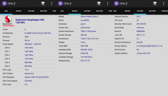 Обратите внимание, что поддельные прошивки часто отображают фейковые данные, которые максимально подогнаны под официальные характеристики. По этой причине мы будем использовать сторонние программы. Популярная AnTuTu здесь не подходит — иногда фейковые прошивки каким-то образом могут обходить проверку AnTuTu. Тем более, эта программа не собирает данные об устройстве непосредственно с самого устройства, а показывает данные из своей базы.