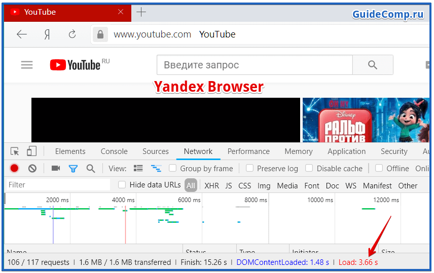 Скорость загрузки в Яндекс: