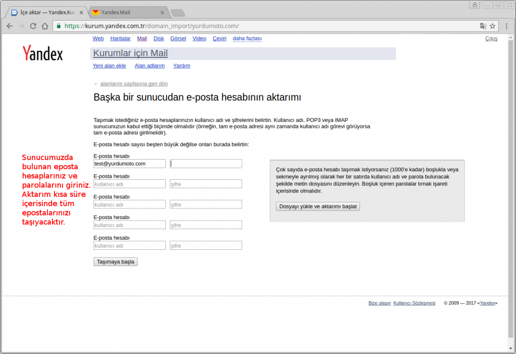 Документация на сайте Яндекса : https://pdd.yandex.ru/help/section61/