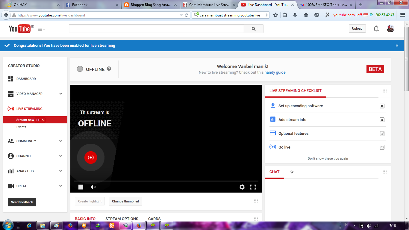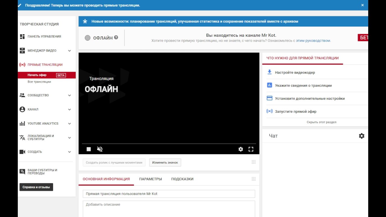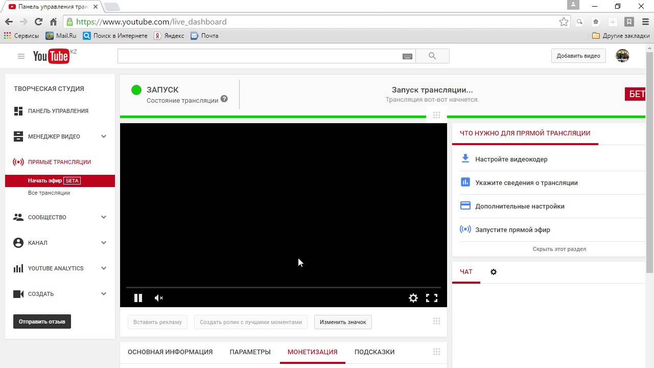 После проверки канала вы получаете доступ к YouTube Live, если за последние 90 дней не было ограничений на прямые трансляции.