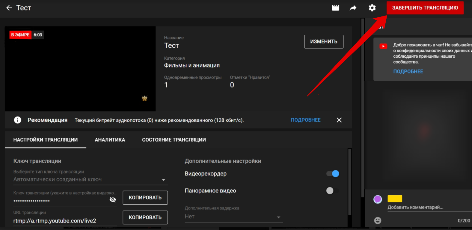 💻 Прямая трансляция на YouTube с помощью кодировщика