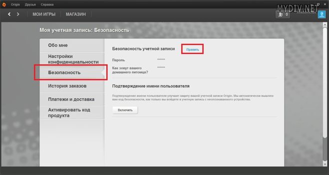 Если же вы не забыли ответ на свой секретный вопрос, то вы можете изменить секретный вопрос в Origin в настойках безопасности (об этом чуть ниже). Сделать это намного проще, чем в первом способе, однако, вам также придется пройтись по большому количеству пунктов.