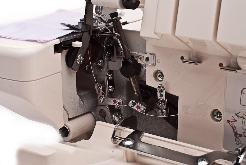 Как я упоминал выше, оверлок работает с использованием 3 или более нитей, которые переплетаются и оборачивают край ткани.