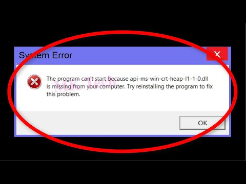 dll пропал или стал поврежден. Аналогичные действия по устранению неполадок должны выполняться, если ошибка возникает для api-ms-win-crt-heap-l1-1-0.dll .