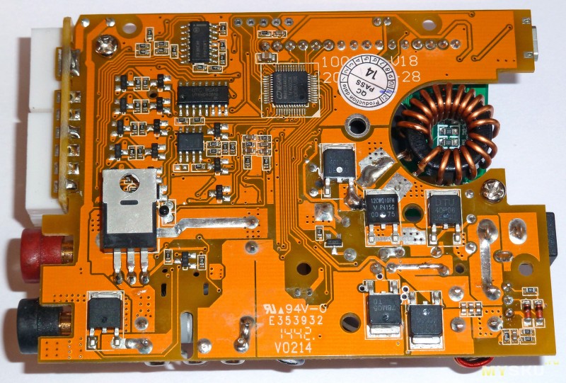 Лишние дорожки подрезаны, в том числе, и с обратной стороны платы. Важно хорошо припаять проводки, чтобы они не отвалились, со временем, от шунта или платы, потому что с этого датчика запитывается не только АЦП микроконтроллера, но и обратная связь по току импульсного регулятора, который, при пропадании сигнала, может перейти в максимальный режим и угробиться.